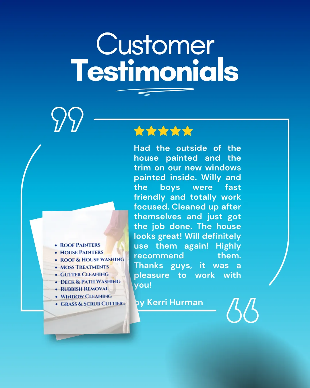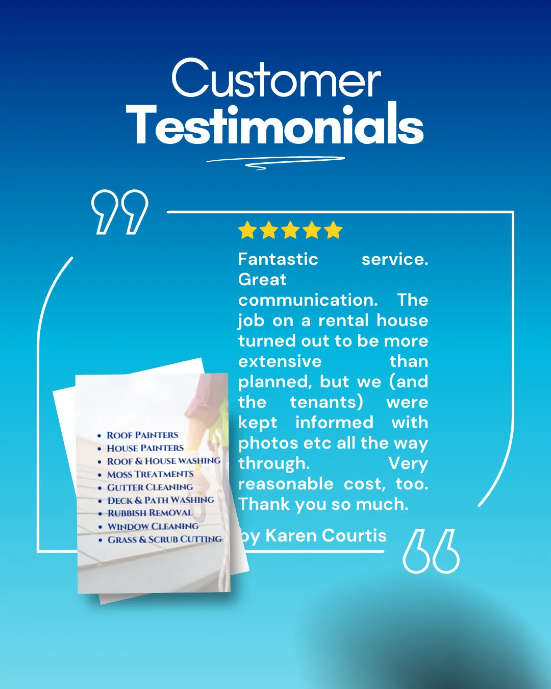 From roof restoration to exterior painting and ongoing property maintenance, we take pride in doing the job properly and standing behind our work. Our family remains actively involved in the business, supported by a trusted team who share the same values: clear communication, dependable service, and results homeowners can feel confident about.